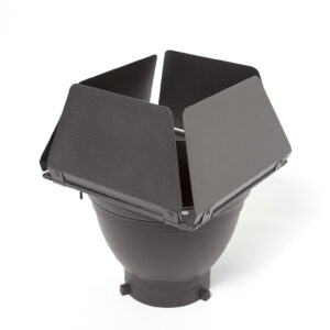 This set of barn doors allows the spread of light to be controlled with the 4 adjustable flaps.
