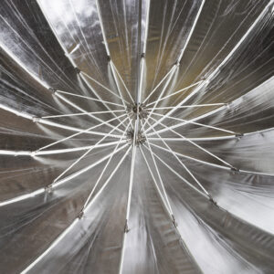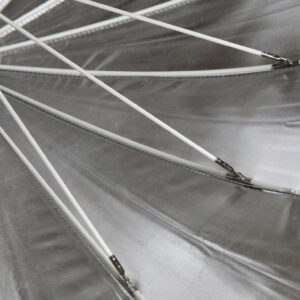 This large silver reflective parabolic umbrella is ideal for producing reflecting light across a large area.